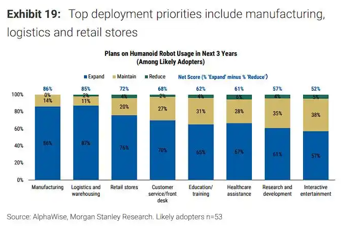 基于调研结果,摩根士丹利维持对人形机器人长期前景的积极判断,但强调当前仍处于早期阶段,规模化放量需要时间。