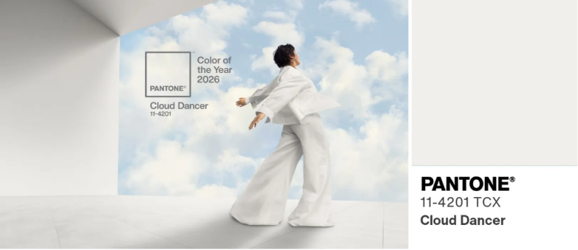 PANTONE 11-4201 Cloud Dancer(云上舞白)被定义为宁静之色,这也是自1999年以来,PANTONE首次选择白色作为年度流行色。PANTONE指出,云上舞白如云朵般轻盈,蕴含着宁静,鼓励人们真正放松身心,集中注意力,让思绪自由驰骋,激发无限创新。