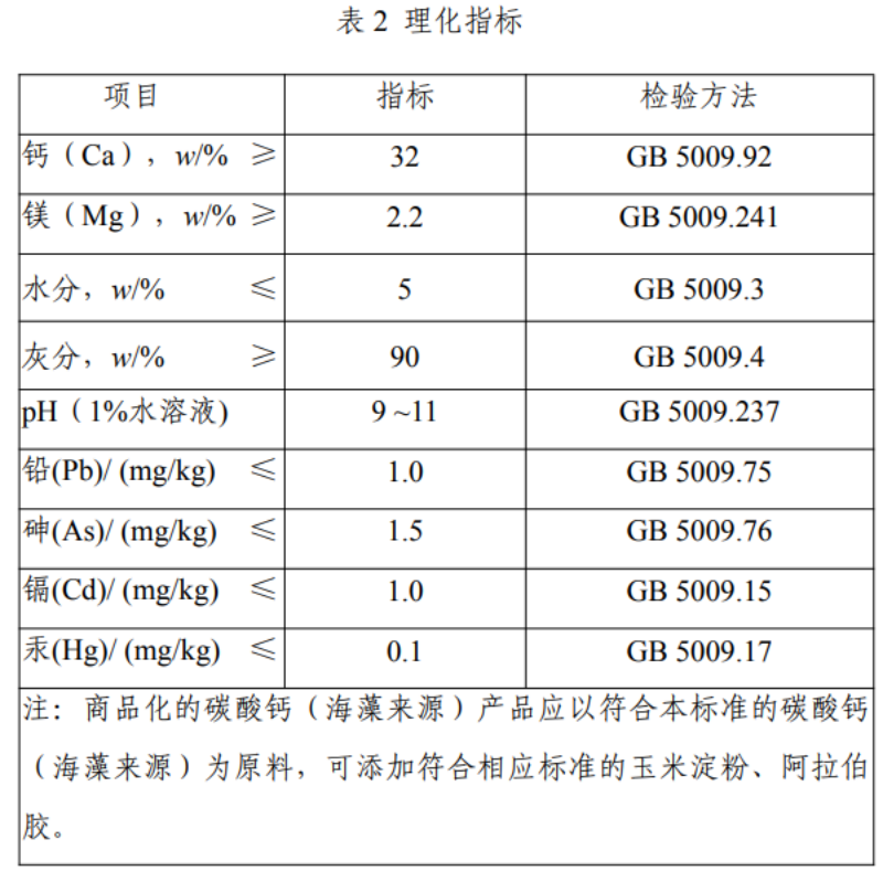 本质量规格要求适用于以特定品种的海藻(Lithothamnion tophiforme)为原料,经从海床收割,经清洗和筛选,用含H2O2 的水在75℃条件下加热1 小时进行杀菌,再经干燥,过磁,研磨,过筛等处理制得的食品营养强化剂碳酸钙(海藻来源)。