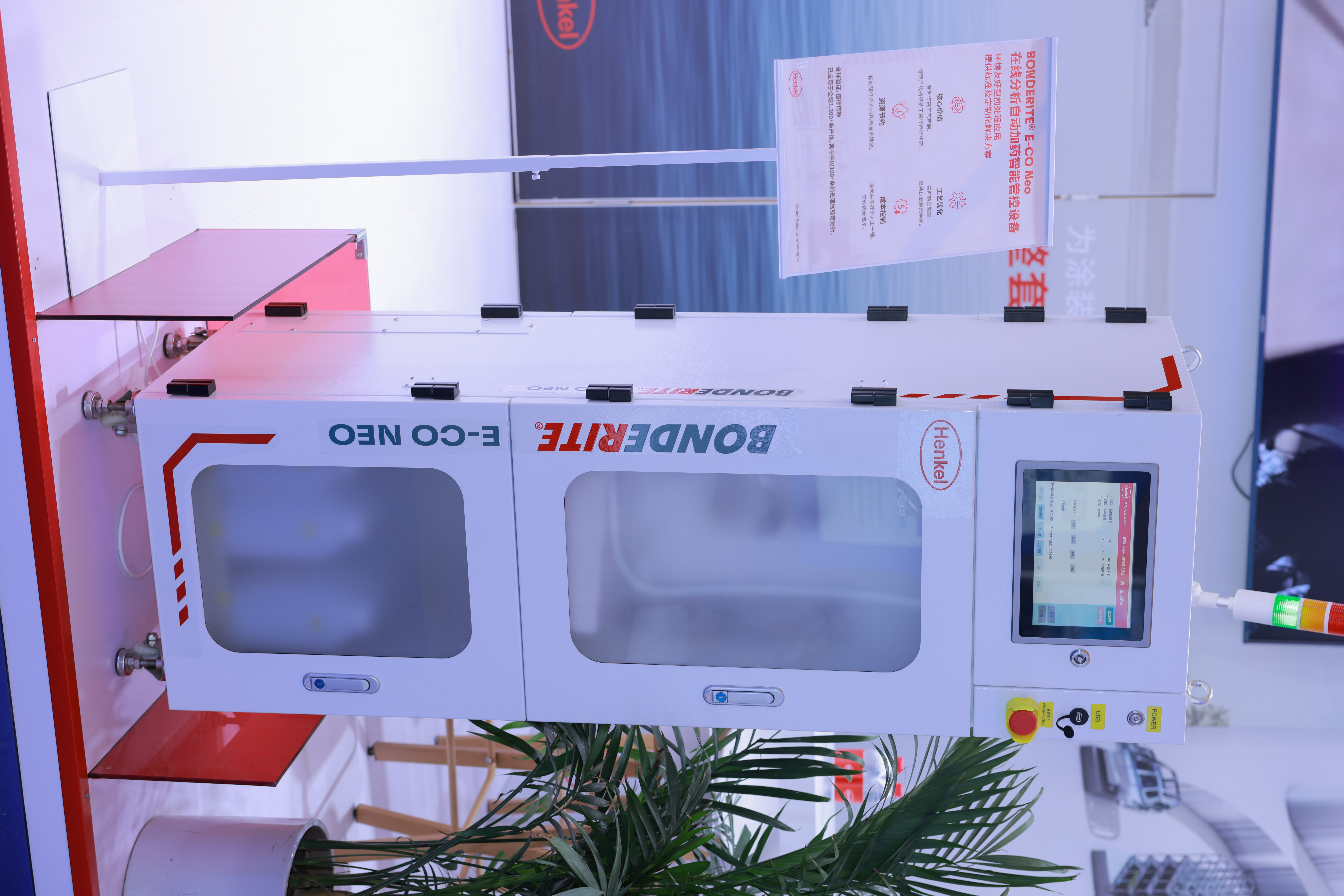 然而,汉高的可持续叙事不止于化学配方。其推出的Bonderite® E-CO Neo在线分析自动加药智能管控设备,将可持续性延伸至生产过程。汉高粘合剂技术工业与电子事业部金属表面处理大中华区业务总监李波向我们详细介绍:“这款设备能实时监控pH值、电导率、浓度等关键参数,实现精准自动加药。目前全球已有超过1300条客户产线应用此设备。”