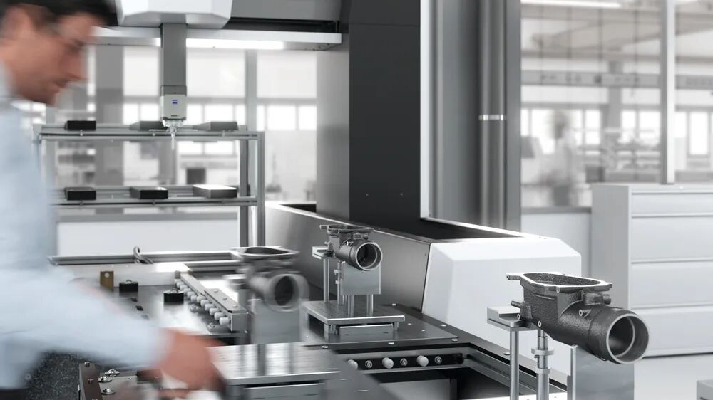 不再依赖人工手动操作,而是通过多类型检测设备、多传感器联动,搭配协作机器人、AGV接驳站等工具,实现工件自动上下料与精准定位。比如蔡司的标准模组就能支持多工位缓存和立体库无人值守检测。