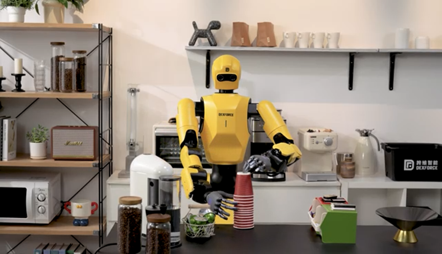 DexForce W1 Pro主要有三大核心亮点:一是基于自研引擎在仿真环境中渲染数据并训练模型,避免了高成本、低效率及场景局限性;二是通过仿真模型生成大量合成数据,包括机器人本体、传感器、任务运动轨迹等,实现高效数据扩增;三是凭借高效数据能力和算法,能快速应用于实际场景,例如现场演示的制作咖啡、抽奖等操作,均基于仿真引擎训练的数据完成。