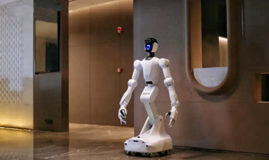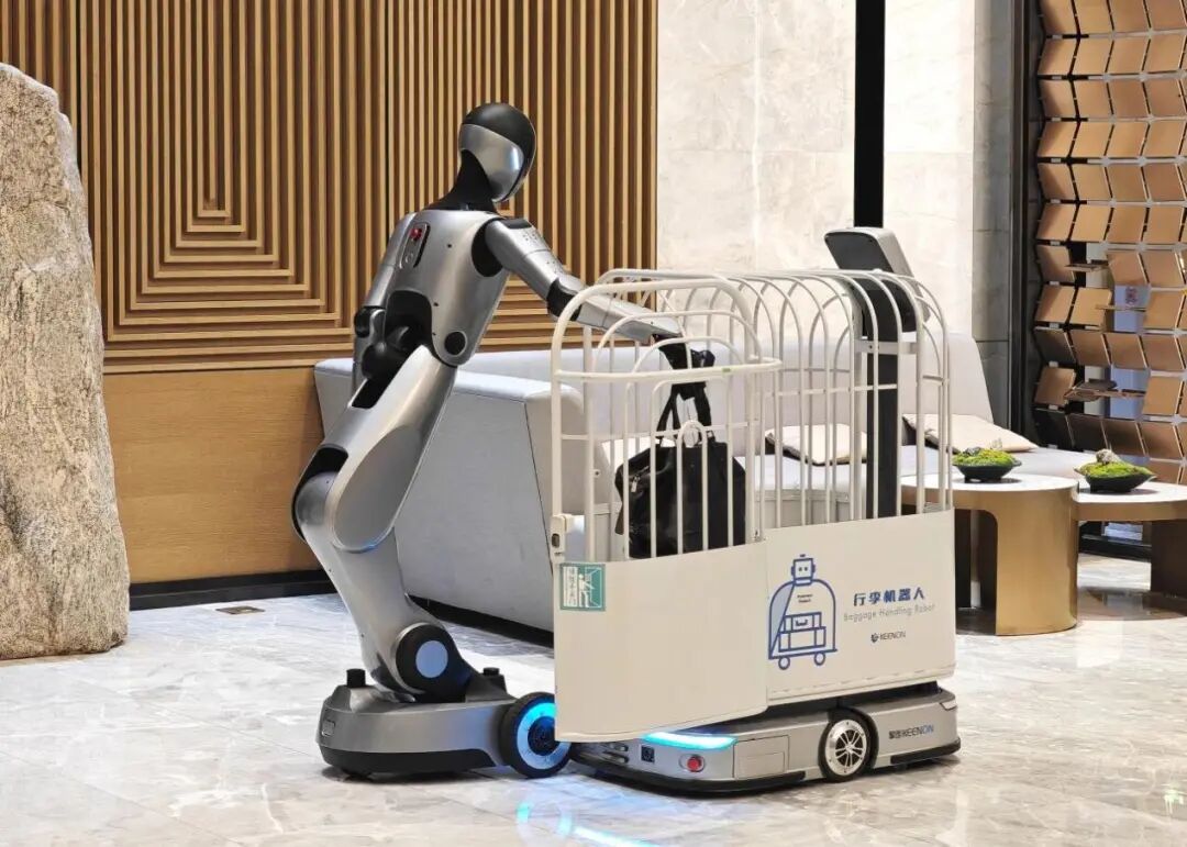 XMAN-R1 搭载11项多模态传感器,并结合自研三维重建技术,具备360度高精度感知能力。其智能避障功能可有效保障人机协作安全,确保在餐厅、酒店、医院等高人流密集场所的稳定运行。XMAN-R1已成功落地上海虹桥香格里拉盛贸酒店,成为全球首台人形机器人服务员。同期入驻的还有擎朗S100大载重机器人、W3酒店服务机器人、C40清洁机器人以及T10/T3配送机器人等7台专用机型,共同打造全球首个“通用+专用”机器人协同服务的标杆场景。