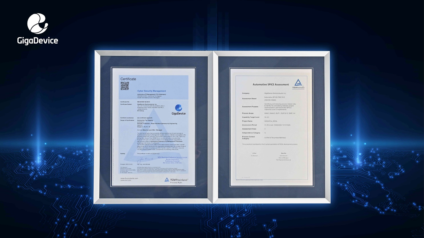 业界领先的半导体器件供应商兆易创新GigaDevice(股票代码 603986)获得了德国莱茵TÜV(以下简称“TÜV莱茵”)颁发的ISO/SAE 21434道路车辆网络安全管理体系认证,同时,GD32A7系列车规MCU的MCAL(Microcontroller Abstraction Layer)软件通过ASPICE CL2(Capability Level 2)能力评估。这标志着兆易创新在汽车网络安全体系建设和软件开发项目管理等方面已达到国际先进水平,为其在全球汽车电子市场的竞争奠定了坚实基础。