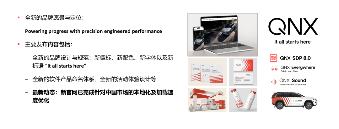 2024年,QNX启动品牌焕新,并推出新的品牌愿景和定位——Powering progress with precision engineered performance。围绕“精准、工程、性能”这三大关键词,QNX在过去一年密集推出了多款重量级产品,进一步巩固其在嵌入式系统,尤其是汽车软件平台中的领导地位。