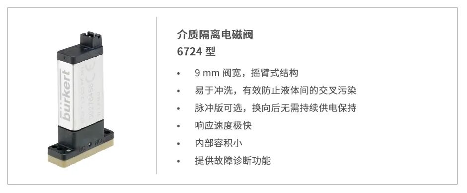 对于微流量液体的精确稳定控制,尤其是腐蚀性的液体一直以来都对电磁阀提出了极高的要求,尤其是在液- 质联用的分析仪中,对测量分析的结果起到决定性的作用。Bürkert 借助其在业界广为使用的 6650 型和 6724 型介质隔离电磁阀,可以为高效液相色谱中的梯度比例阀组提供完美的解决方案。