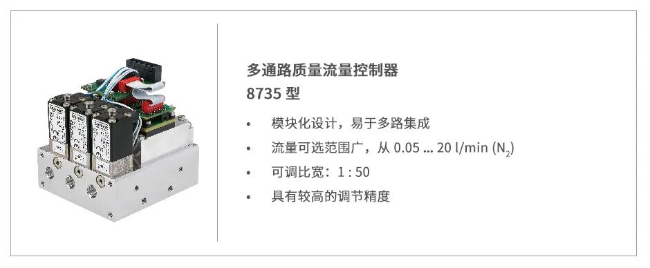 各类质谱分析仪在离子化样品的时候,会用到多种惰性气体或几种腐蚀性的气体进行反应或碰撞,这些气体在进入真空腔时需要被精确地控制。Bürkert 可以从成本、体积、易用性等不同的角度提供不同解决方案,满足各类客户对于气体精确控制的要求。