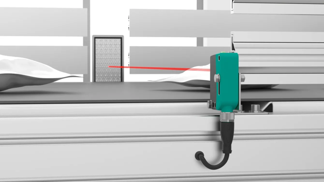 在现代物流中心和包装线上,纺织品、电子产品或配件等产品常使用塑料袋包装。这些柔软的塑料袋轮廓不规则,传统的反射板式传感器因其单点光束,在可靠检测这类物体时面临挑战。R305反射板式区域传感器则能检测通过的袋装物品,因其光带较宽,物体更易停留在光带内,从而触发检测信号。