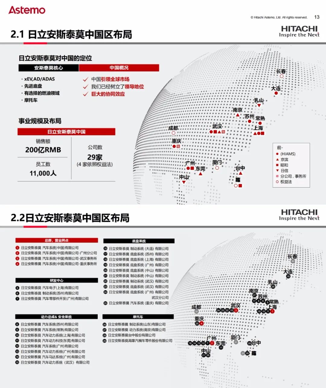 关于中国区安斯泰莫,其中国区总部最早名称为日立汽车系统(中国)有限公司,后改名为日立安斯泰莫汽车系统(中国)有限公司,于今年刚完成最新更名:安斯泰莫(中国)投资有限公司。