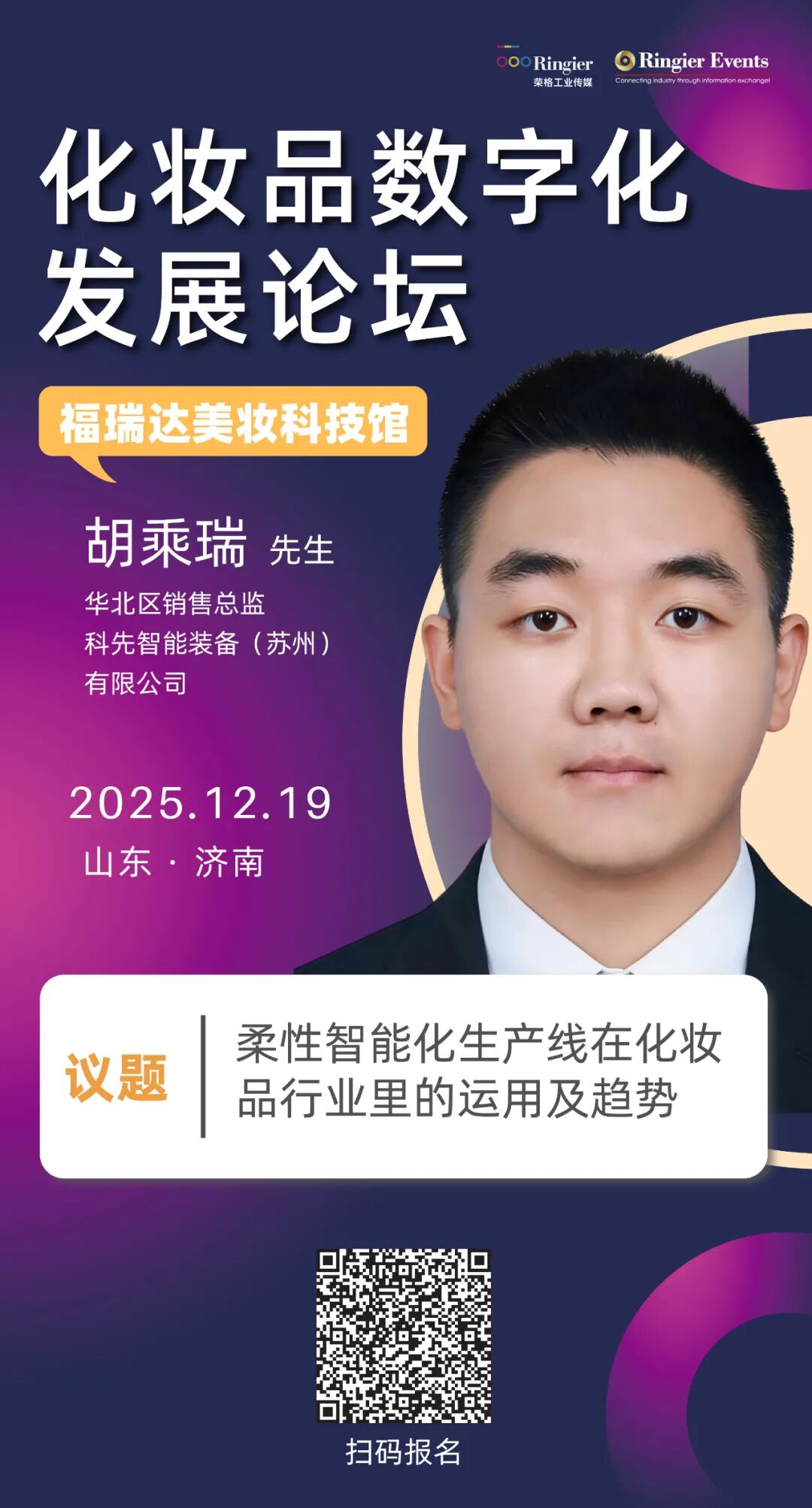 科先智能装备(苏州)有限公司的胡乘瑞先生也将围绕核心技术突破与产线柔性化升级等行业趋势,进一步分享科先对化妆品生产数智化路径的解决方案——