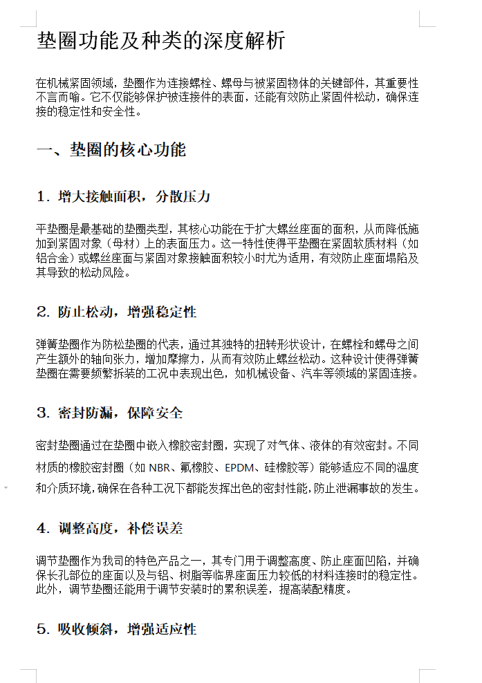 垫圈功能及种类的深度解析