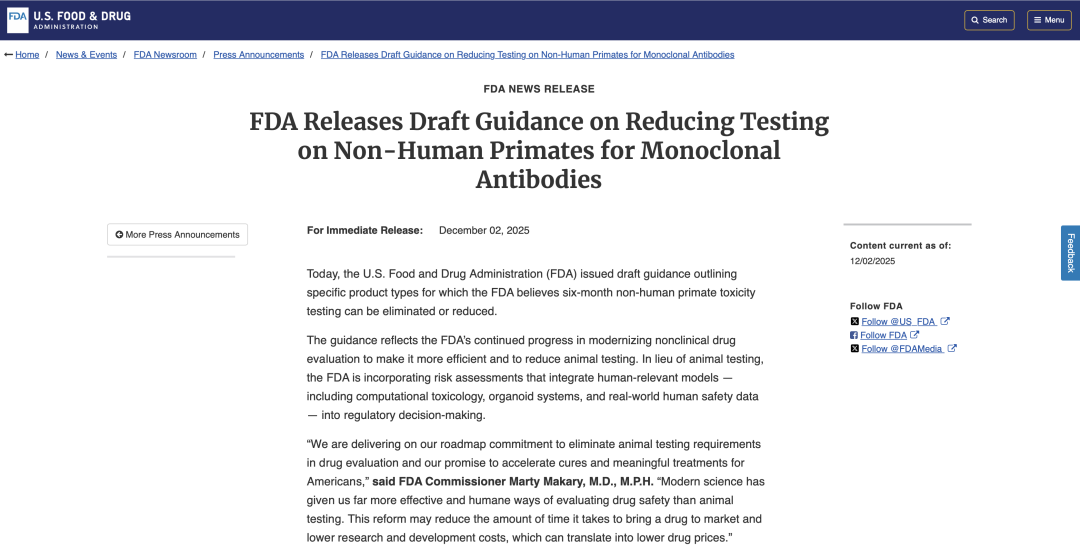 美国 FDA 已发布指南,逐步取消对单克隆抗体及其他药物的动物试验要求。如果 AI 设计的分子能够在计算环境中更准确地预测人体反应,传统依赖大量动物实验的药物开发流程可能发生根本性改变。