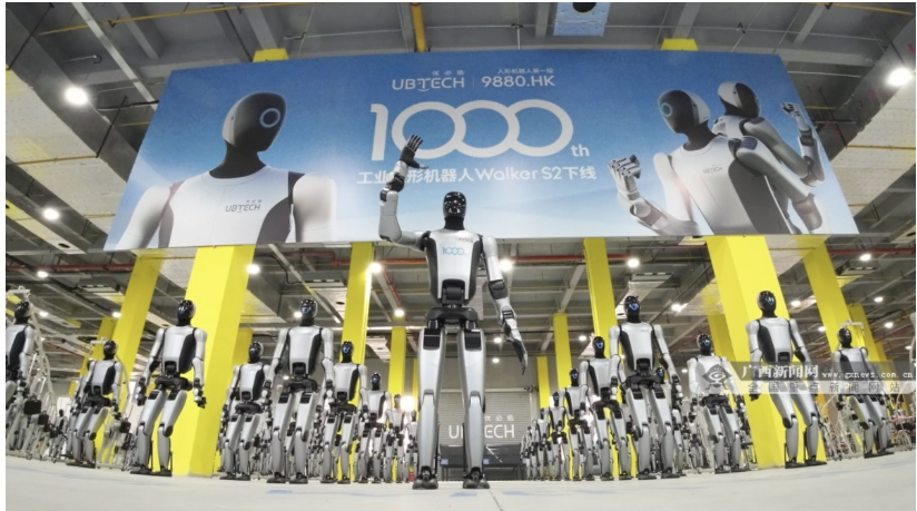 12月26日,优必选第1000台工业人形机器人Walker S2在柳州成功下线。今年6月,柳州优必选下线广西首台工业人形机器人。从第1台到第1000台,仅用了半年时间,不仅见证企业量产能力,更标志着广西在人形机器人创新发展的赛道上又迈出坚实一步。
