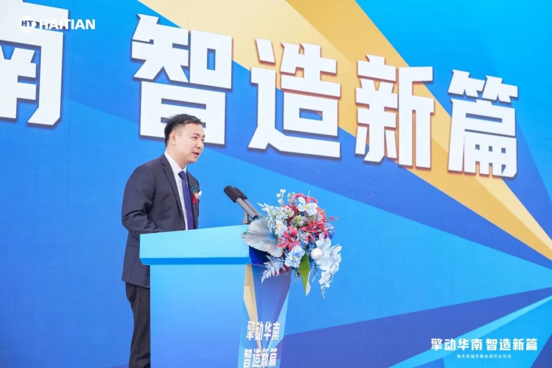 海天集团总裁张斌在致辞中表示,华南总部是集团深化国内“双中心”战略、融入大湾区的重要支点。这里不仅是先进制造基地,更将成为集研发创新、运营管理、市场服务与人才集聚于一体的综合高地,聚焦高端智能装备生态,培育新质生产力。