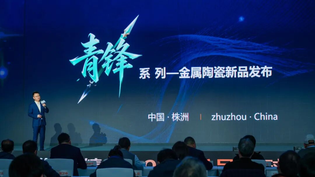 华锐精密金属陶瓷产品线总经理彭欣展示了团队新的研发成果——“青锋”系列金属陶瓷刀具,该系列基体采用特殊的"双芯"组织结构,表层硬化梯度结构等技术手段,使刀片更稳定更耐磨。优异的几何槽型结构设计,具备良好的断屑效果,能更好的实现平稳切削,为制造业升级转型注入了硬核动力。