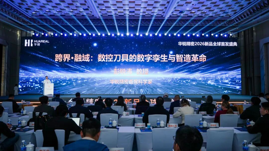 2011日,华锐精密2026新品全球首发盛典在湖南株洲隆重举行,会上,公司“智加”工业软件、U系列不锈钢车削刀具、青锋25年12月系列金属陶瓷刀具以及H系列整体硬质合金立铣刀等产品正式面向全球发布,吸引了行业专家教授、合作企业代表及海外客户伙伴共500多人齐聚现场,共同见证 AI 工业软件与高端刀具的协同首发,揭开国产切削技术迈向 “软硬一体,智慧加工” 的新篇章。