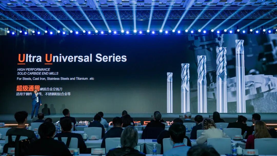 华锐精密整硬事业部总经理屈植华隆重发布了全新H系列整体硬质合金立铣刀新产品,H意为HARDPLUS,聚焦50-65HRC高硬度材料的铣削加工,该系列具备高硬度、高精度、高效率和高寿命的特点,H系列凭借基体、涂层、结构以及切削应用领域的创新,为用户降本增效以及高硬度材料的加工,提供极致的解决方案。