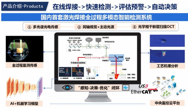 自主研制国内首套高精度、高可靠性的激光焊接全过程多模态智能检测系统,结合焊接机理和 AI模型,实时检测熔深及表面/内部缺陷(如气孔、飞溅、咬边等),解决精密焊接质量精准控形控性的关键瓶颈难题