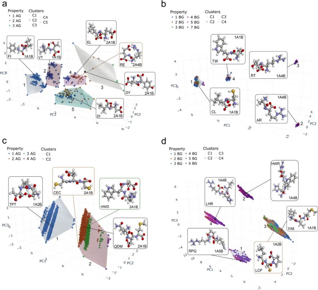 研究人员首先利用非监督机器学习中的聚类分析(Clustering Analysis),对氨基酸和短肽进行了化学特征提取。
