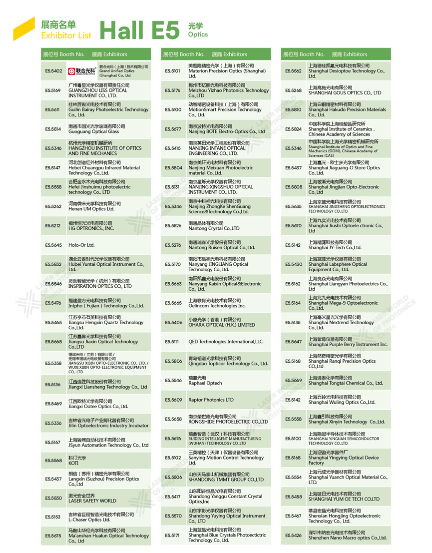 最新展商及展品详情可登录慕尼黑上海光博会官方小程序了解详情可通过发布询盘,提前告知您的采购需求