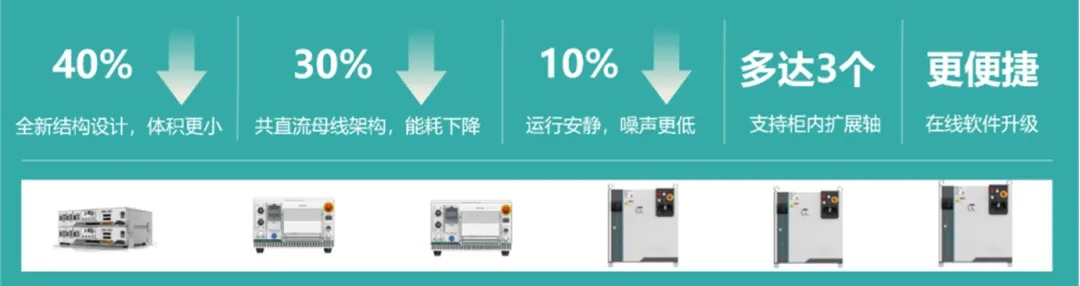 硬件智能深度融合:全新硬件设计推动电控系统从通用化迈向智能化,新一代高集成控制柜引入可控整流技术,大幅减小体积及能耗,控制器平台兼备AI扩展能力,支持通过E-Care接入云平台、ERI连接外部智能终端,实现“节能、集成、智能”一体化。