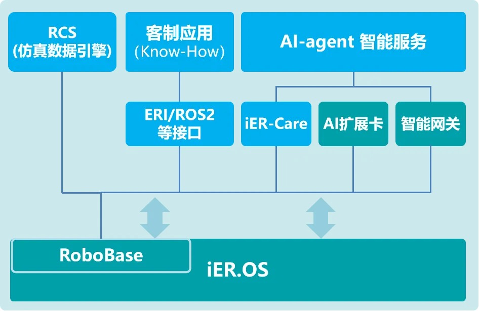 iER.OS 以数据、应用、AI为核心,实现从封闭架构到开放架构、云边协同的系统跨越,不仅显著提升运动控制性能,更在开放性、智能化与协同性上取得突破。通过构建“机器人+AI”架构,打通数据接口、感知模块与控制核心,强化机器人的环境感知、实时分析与自主决策能力。同时,iER.OS 提供丰富的算法库与模块化开发工具,支持用户及合作伙伴自主开发、封装与部署专属工艺包。开放AI集成接口,基于“外脑”的力量,不断提升系统的智能分析与决策能力。