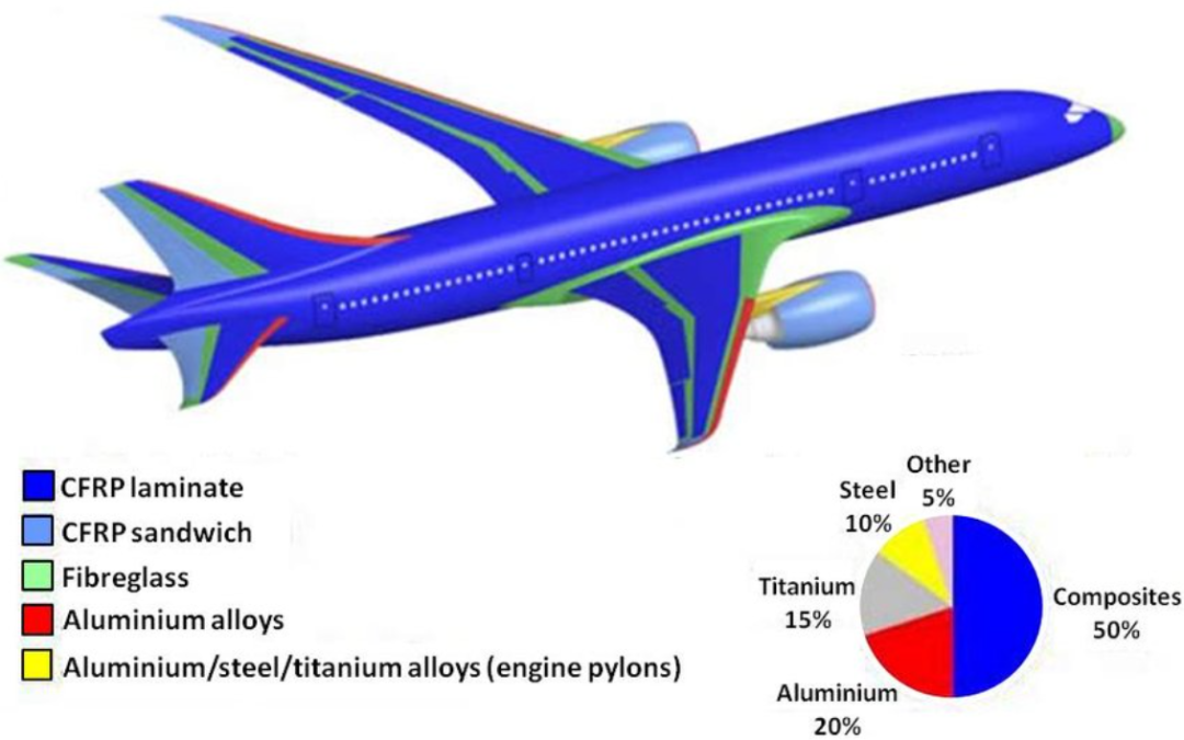 尽管机翼柔性是飞机设计中的常规考量,但787所实现的柔性程度堪称非凡。这一特性并非为追求外观效果,而是材料科学、空气动力学与结构工程综合创新的必然结果。其中,碳纤维复合材料的大规模应用,是787机翼柔性远超传统机型的核心原因,进而实现了性能提升、燃油增效与乘客舒适度优化的多重目标。