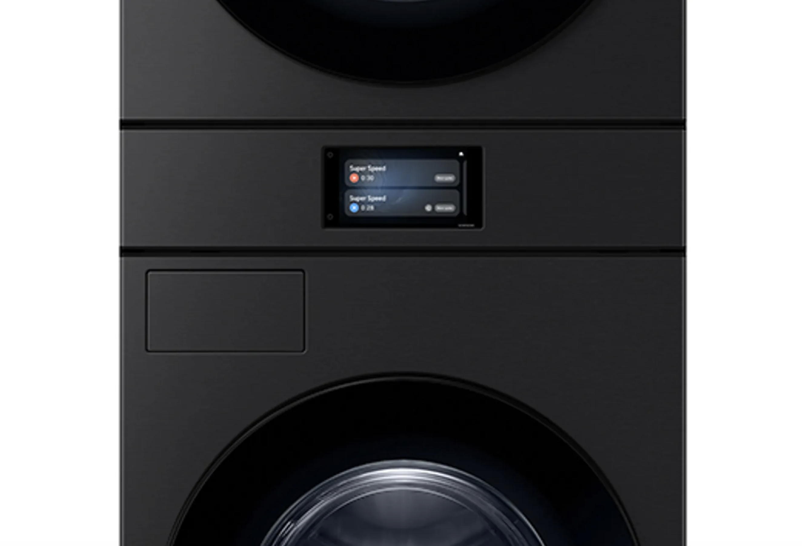 三星的 Bespoke AI Laundry Hub 同样强调 AI 驱动的智能洗护体验。7 英寸 AI Home LCD 显示屏集中控制并提供个性化洗涤周期建议;AI OptiWash+ 与 AI OptiDry+ 智能检测织物类型、污渍程度与湿度,优化洗涤与烘干性能。Flex Auto Dispense 系统可自动分配最多 34 次洗涤剂量,或灵活配置为 20 次柔顺剂+20 次洗涤剂。Super Speed Cycle 可在 60 分钟内完成全负载洗涤与烘干,比上一代产品快 8 分钟。