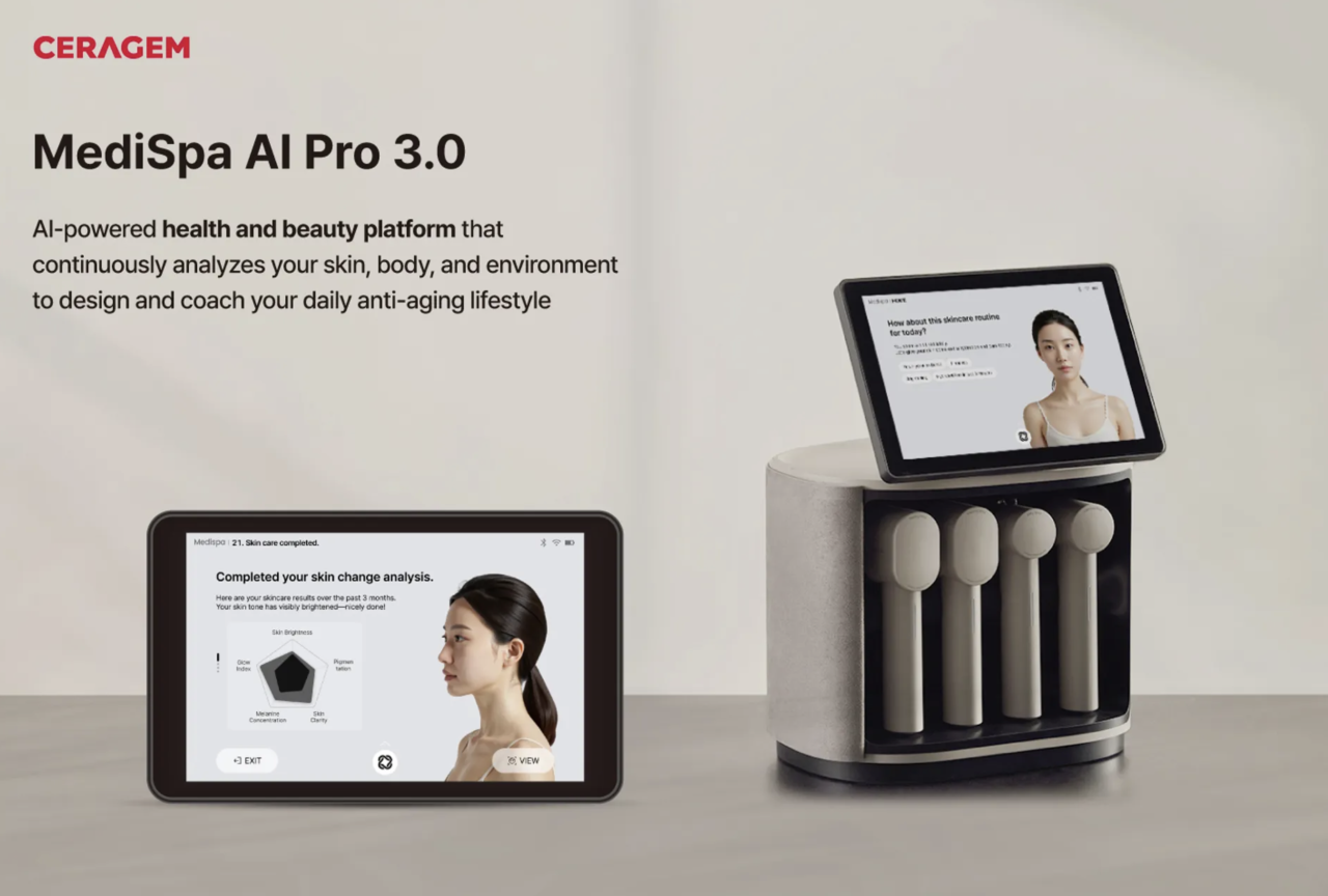 除 Skinsight 外,爱茉莉太平洋还展示了与三星电子合作开发的 AI 皮肤分析与护理方案。该方案集成于三星的 AI Beauty Mirror,通过内置摄像头获取光学诊断数据,精准评估毛孔状况、泛红、色素沉着与皱纹,并基于超过 45 万例皮肤数据训练的模型提供个性化护肤建议。