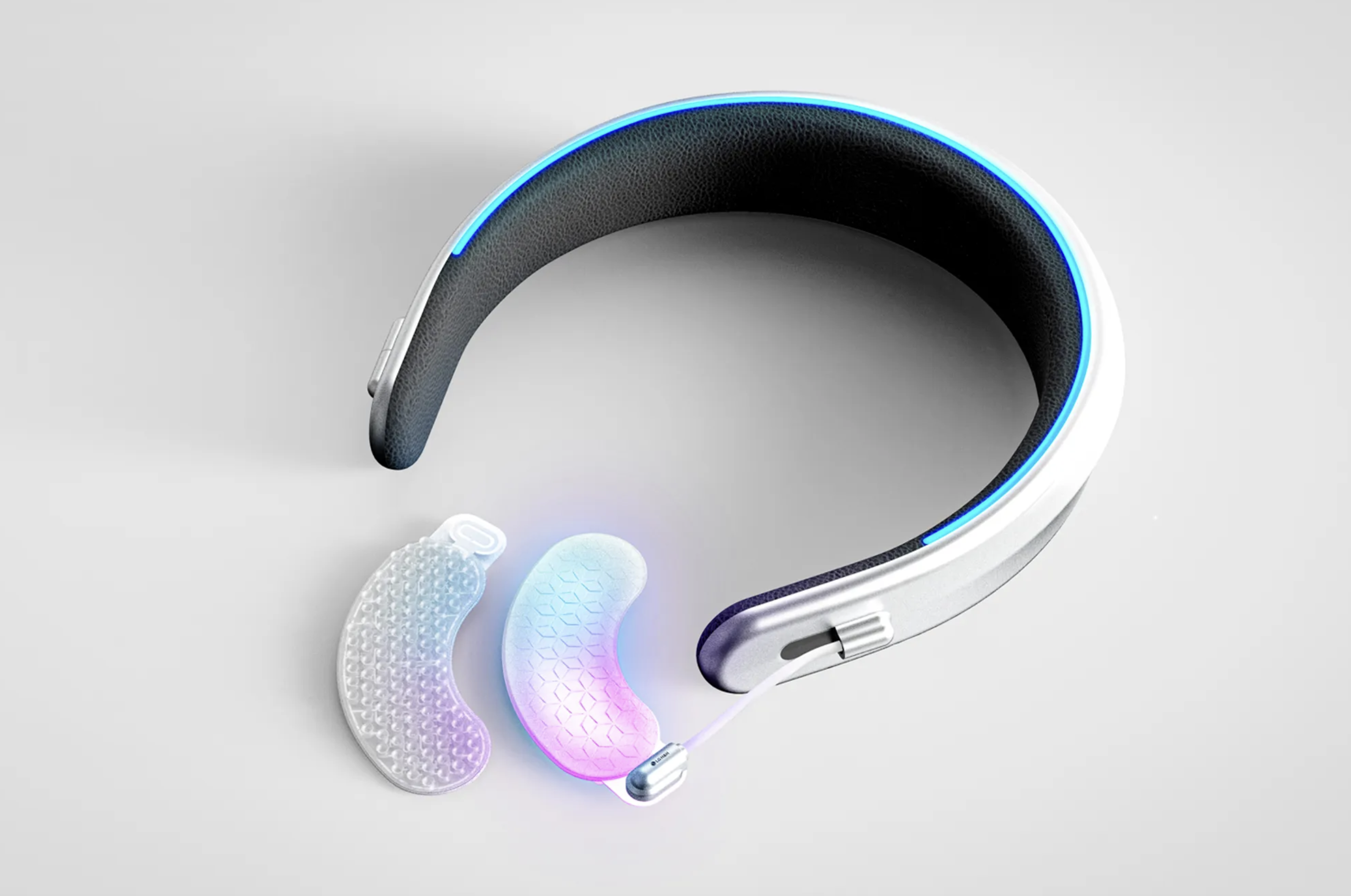 这款眼周护理设备采用超薄可拉伸 LED 贴片设计,其多模态 AI 模型能够分析面部图像,将眼周区域细分为多个微区,评估皮肤状况后提供优化的光疗方案。贴片的仿生界面融入了针对皮肤分析结果定制的外用配方,紧密贴合面部轮廓,旨在提升活性成分递送效率并最大化光能利用率。免提头带设计提供多种佩戴方式,材质触感柔和,便于融入日常护肤流程。