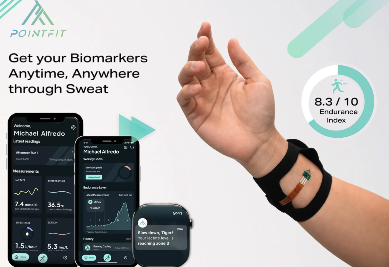 香港科技大学孵化的企业 Point Fit Technology 发布的 PF-Sweat Patch 获得数字健康类别创新奖荣誉提名,这是全球首款超薄可穿戴皮肤贴片,通过汗液追踪健康状况,用于预防保健与长寿管理。
