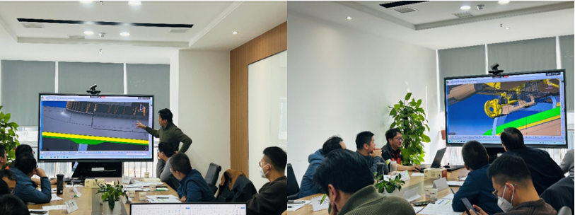会上,结构设计部的技术骨干依次围绕DZF600无人机的结构布置、传力路线、结构形式、承力特性、强度分析以及零部件制造与装配方案等关键内容进行了详细汇报。大兆丰航空对恒神技术团队在短时间内完成详细设计给予了充分肯定。随后,双方聚焦机体减重优化这一核心议题展开深入交流,并达成一致意见。