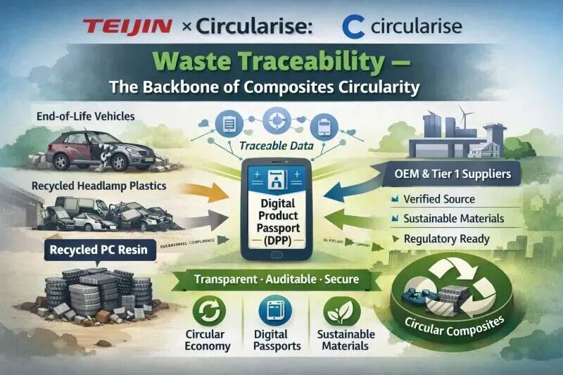 帝人株式会社已启动一项示范应用项目,采用荷兰Circularise公司的数字产品护照(DPP)技术,旨在实现再生聚碳酸酯(PC)树脂在整个供应链中的可追溯管理。帝人将通过该项目,验证数字产品护照作为满足欧盟报废车辆指令草案合规要求的可行性。