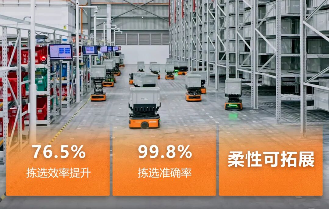 方案大幅提升了仓库在立体空间上的存储密度,更实现“货到人”高效拣选,优化低频商品作业流程。