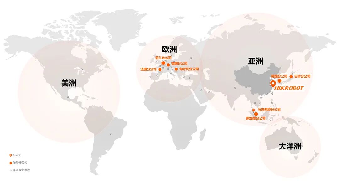 从亚洲到欧洲,海康机器人始终致力于将可靠的技术与本土化服务,融入不同区域的产业演进之中,目前已逐步在荷兰、法国、德国、匈牙利、韩国、日本、新加坡、马来西亚等地设立分公司。