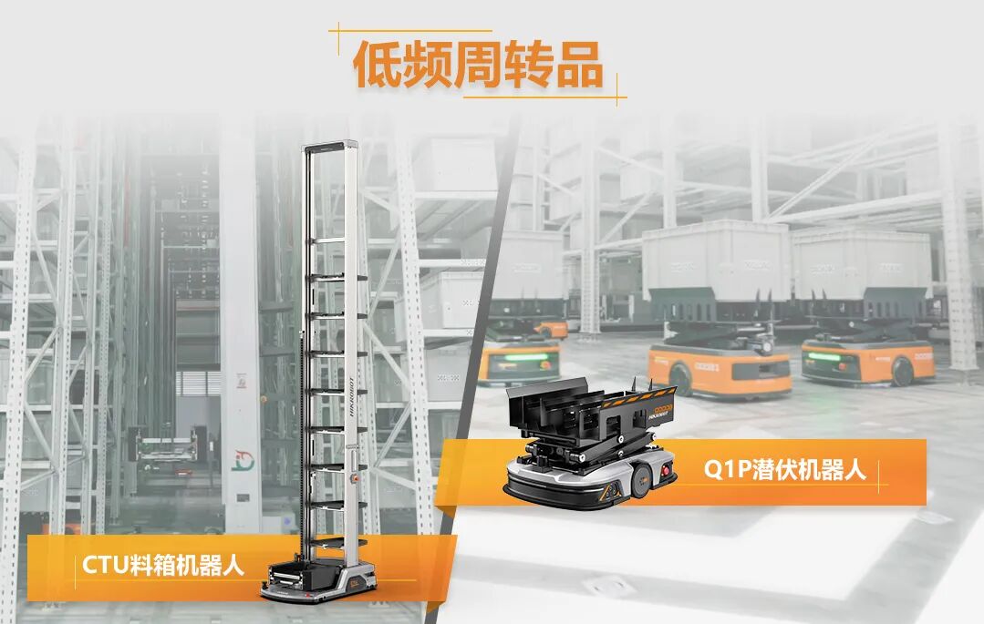 针对低频商品,项目采用海康机器人料箱接力拣选方案(TRP),配备19台CTU料箱机器人与67台Q1P潜伏机器人。