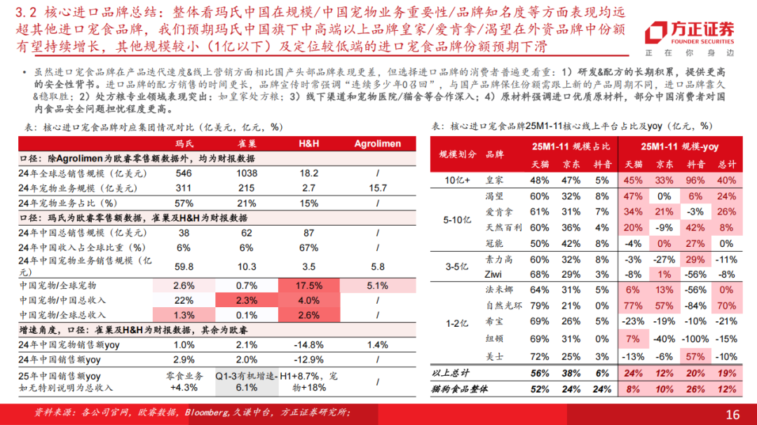 这五家企业,是近年来国内宠物行业发展的典型代表,其成长历史及发展原因有着重要参考价值。另外,该报告还对进口品牌如玛氏及雀巢宠物食品进行分析。