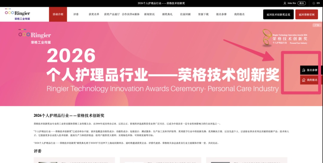 2026 个人护理品行业——荣格技术创新奖现已全面启动报名!你准备好材料了吗?