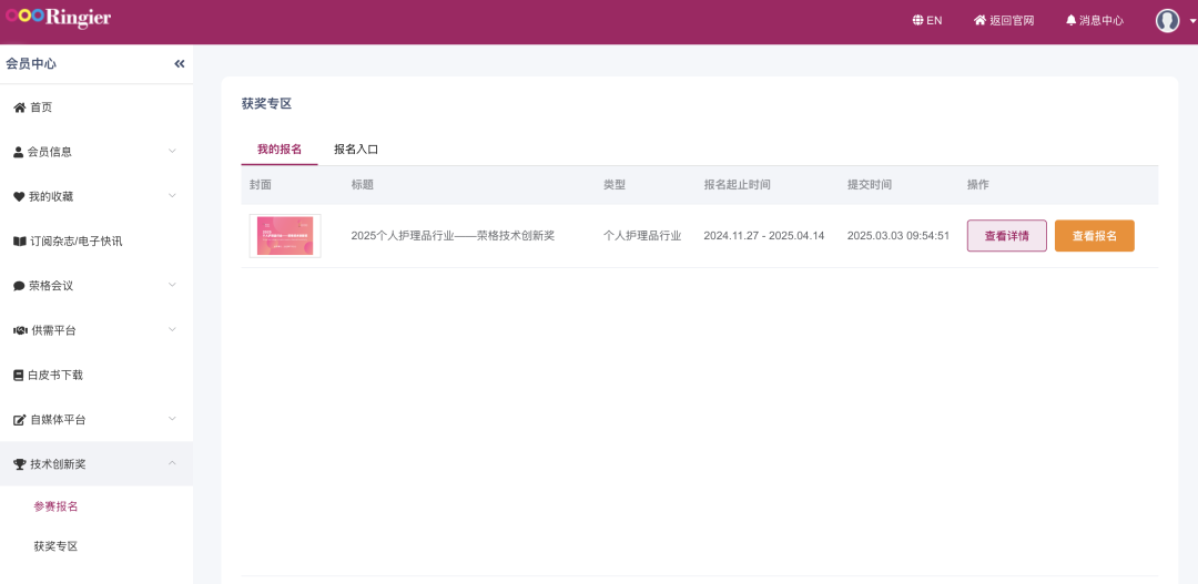 04 成功报名之后,可以访问官网,点击右侧「我的报名」,即可进入荣格会员页面,查看管理报名情况并追踪,即使获取反馈信息