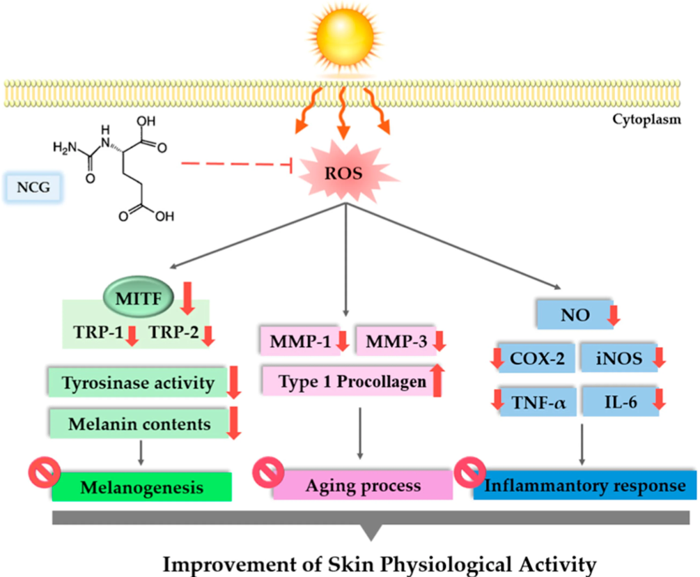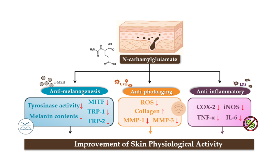 参考材料:Multifunctional Effects of N-Carbamylglutamate on Skin-Related Cells: Antioxidant, Anti-Aging, Anti-Melanogenic and Anti-Inflammatory Activities - mdpi