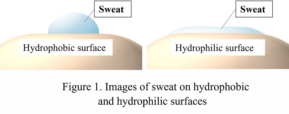 由于人体皮肤具有疏水性,汗液往往形成水滴而不是扩散(图 1)。这启发了花王公司提出在皮肤上形成亲水膜的想法,以帮助汗液快速扩散并加速蒸发。