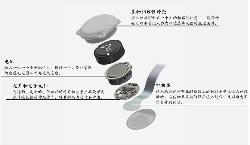 Neuralink的“线”与“N1”植入物:马斯克的公司使用比头发丝还细的柔性聚合物丝线植入大脑,业内普遍认为其基底为聚酰亚胺PI等材料,直径16-84微米,以最大限度减少脑组织损伤。其N1植入体外壳采用PCTFE封装材料,兼具生物相容性与电磁透明性,支持无线充电与通信,低热导率可保护脑组织。2024年成功完成人体实验,使瘫痪患者实现脑控电脑光标操作。
