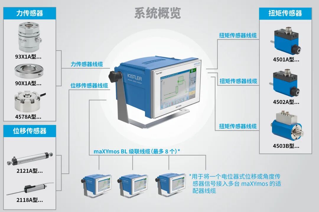▲maXYmos系统与力传感器、位移传感器及扭矩传感器的多样化组合方案概览,全面保障质量要求。