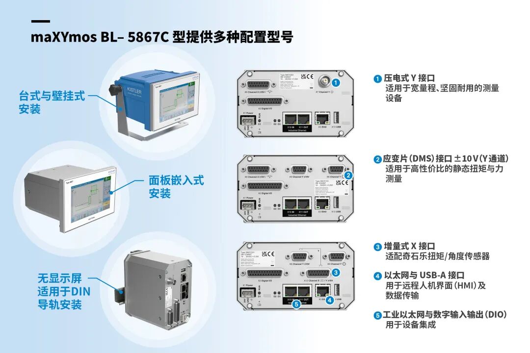 进阶版maXYmos BL过程监控系统,将质量保障流程化繁为简。maXYmos系列设备能够精准采集传感器信号,实时分析信号曲线并即时输出评估结果。该系统既可独立控制工艺周期,亦可作为工厂控制系统的组成部分。设备支持压电式传感器、应变片、±10V传感器及电位计的测量数据采集,并新增增量式传感器接口,实现对扭矩与角度的精准评估。
