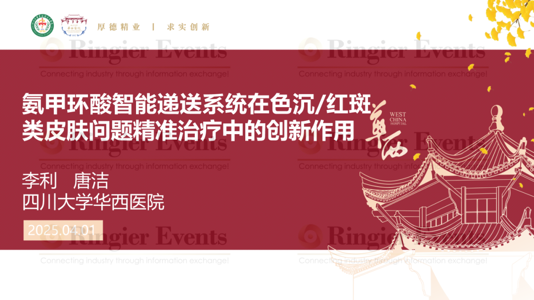 四川大学华西医院化妆品评价中心 李利教授、唐洁女士分享议题“氨甲环酸智能递送系统在色沉/红斑类皮肤问题精准治疗中的创新作用”