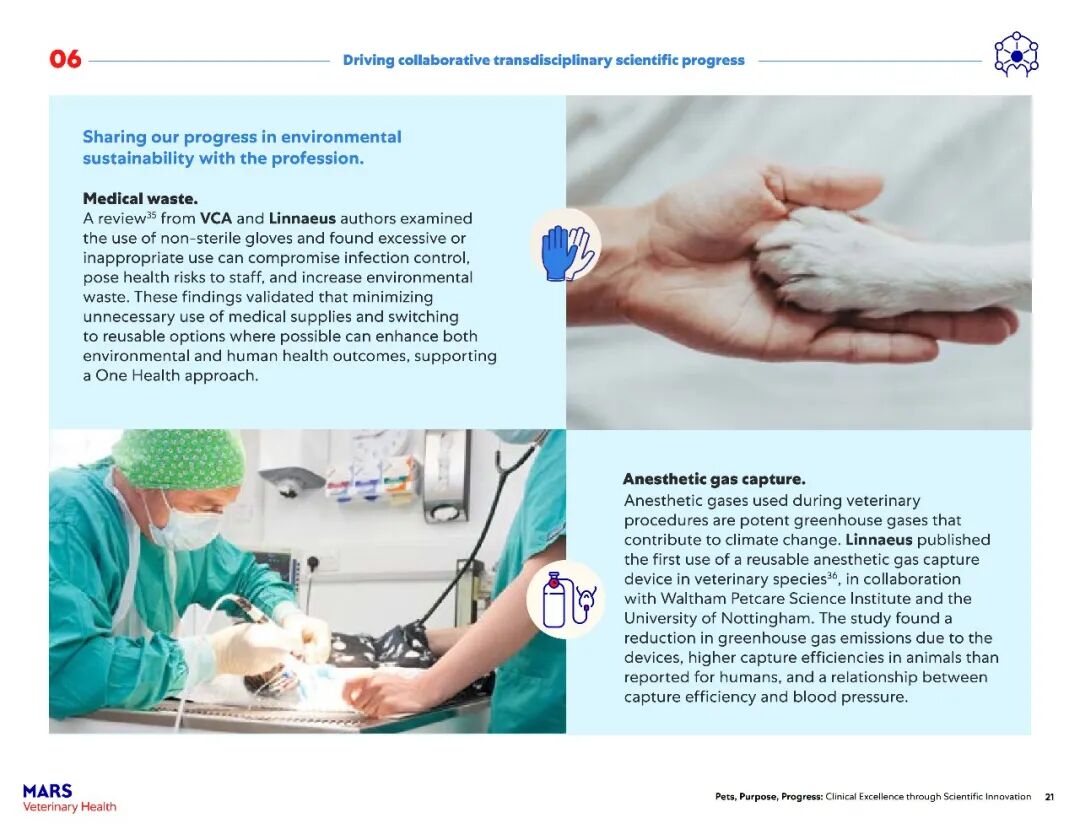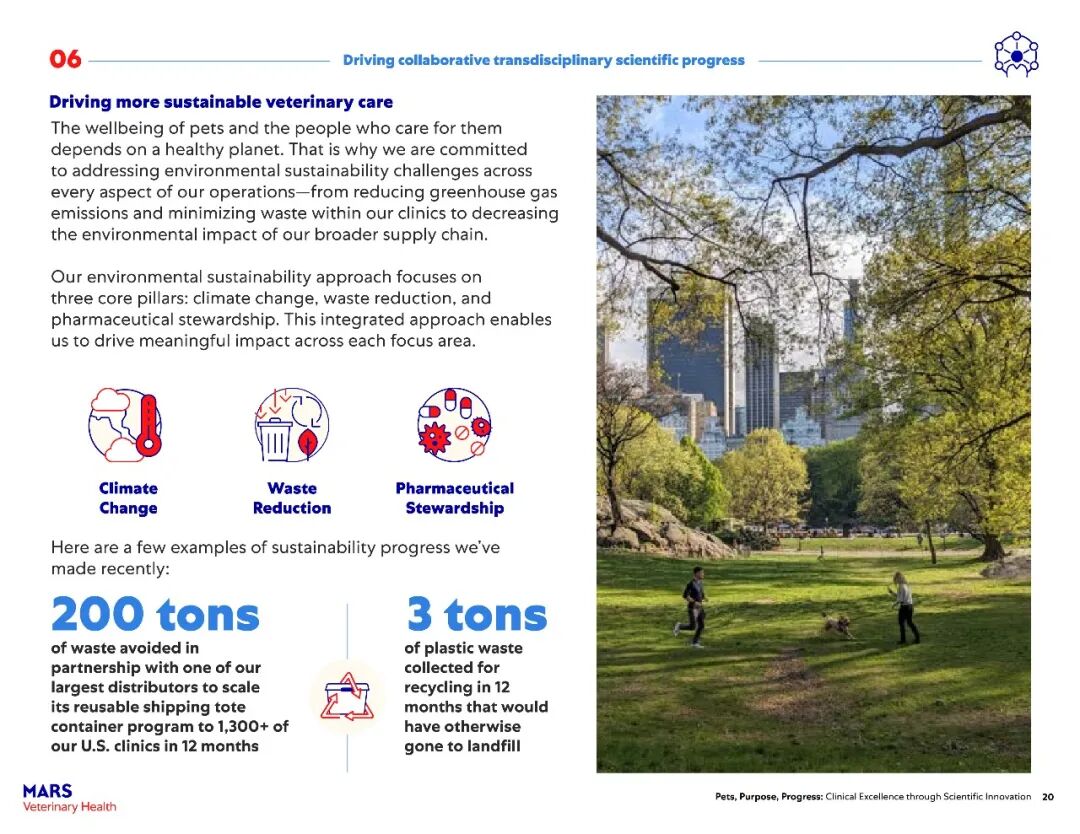 推动更可持续的兽医护理:与大型分销商合作,在12个月内将可重复使用运输箱项目推广至美国1300多家动物医院,避免产生200吨废弃物;收集3吨塑料包装废弃物进行回收,避免填埋。