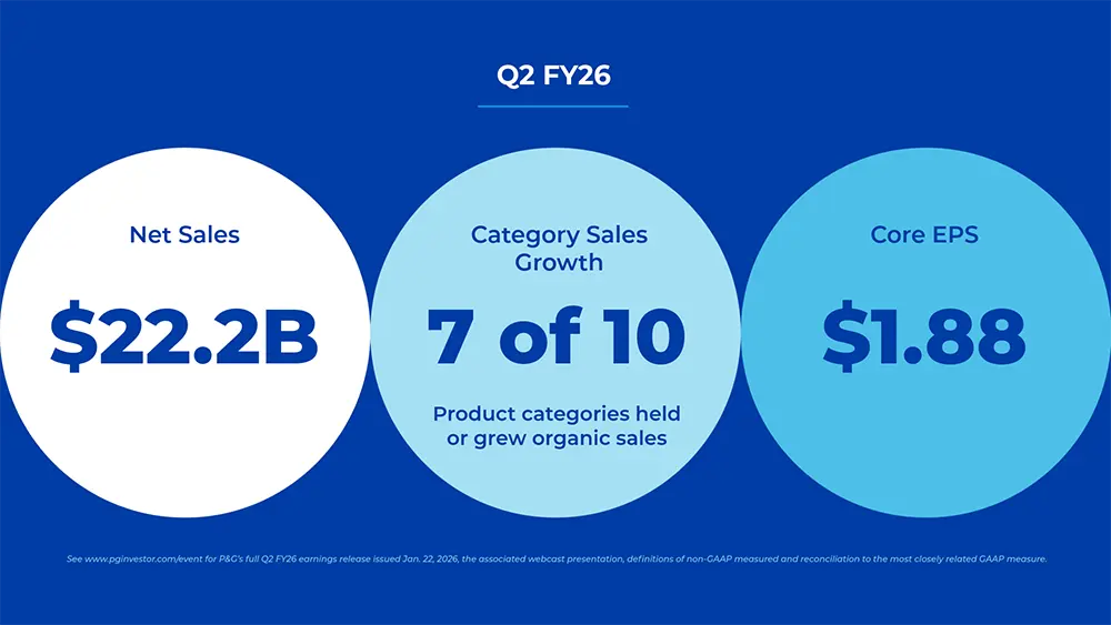 全球最大消费品公司宝洁(Procter & Gamble)于 1 月 22 日发布了 2026 财年第二季度财报……