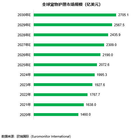 全球宠物护理市场规模与增速
