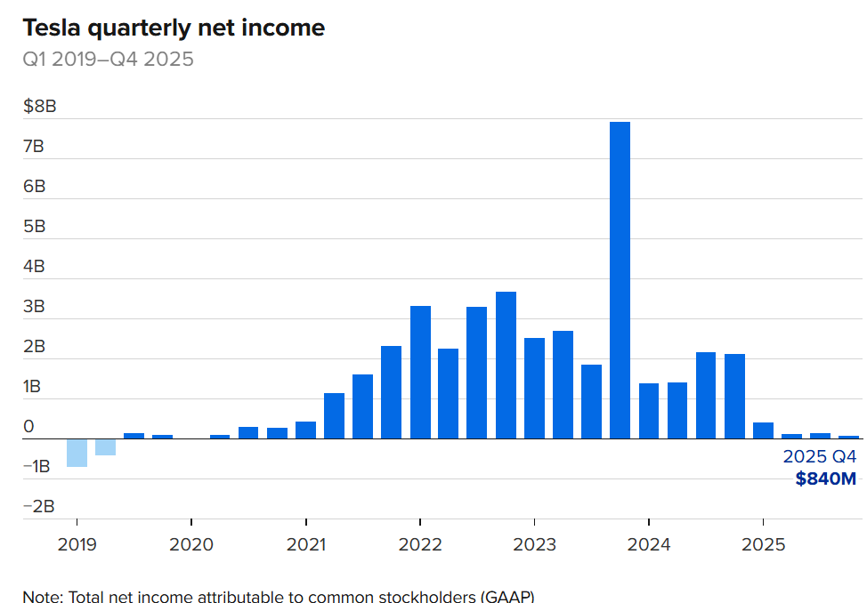本月早些时候,特斯拉公布第四季度车辆交付量同比下降了16%,全年交付量下降了8.6%。