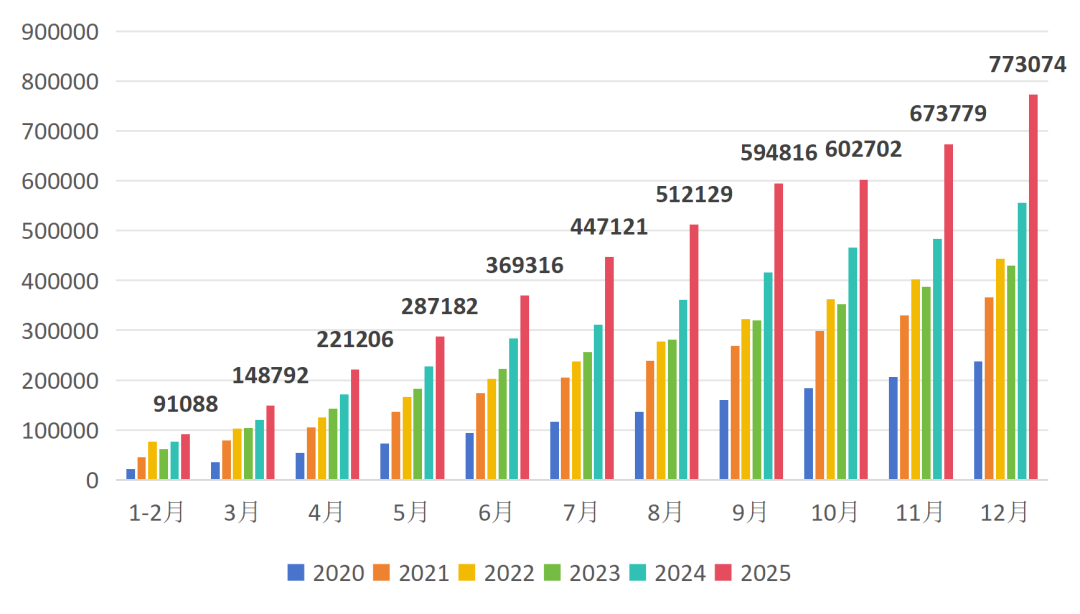 全年28% 的增长率显著高于 2025 年规模以上工业增加值 5.9% 的整体增速,也高于装备制造业 (9.2%) 和高技术制造业 (9.4%) 的平均水平。